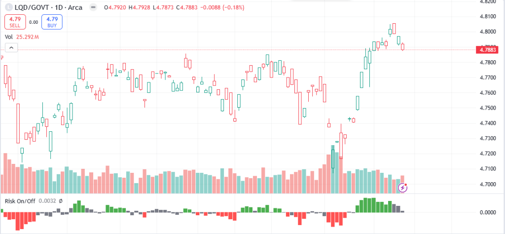 UPDATE返,LQD/GOVT個數都跌左兩日,就快變負數。投資黎講就未必太擔心,但短炒就可以參考呢個,唔維持正數就小心啲。